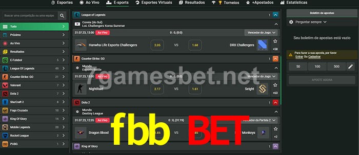 O fbb bet oferece uma grande seleção de opções de apostas em e-sports com probabilidades competitivas